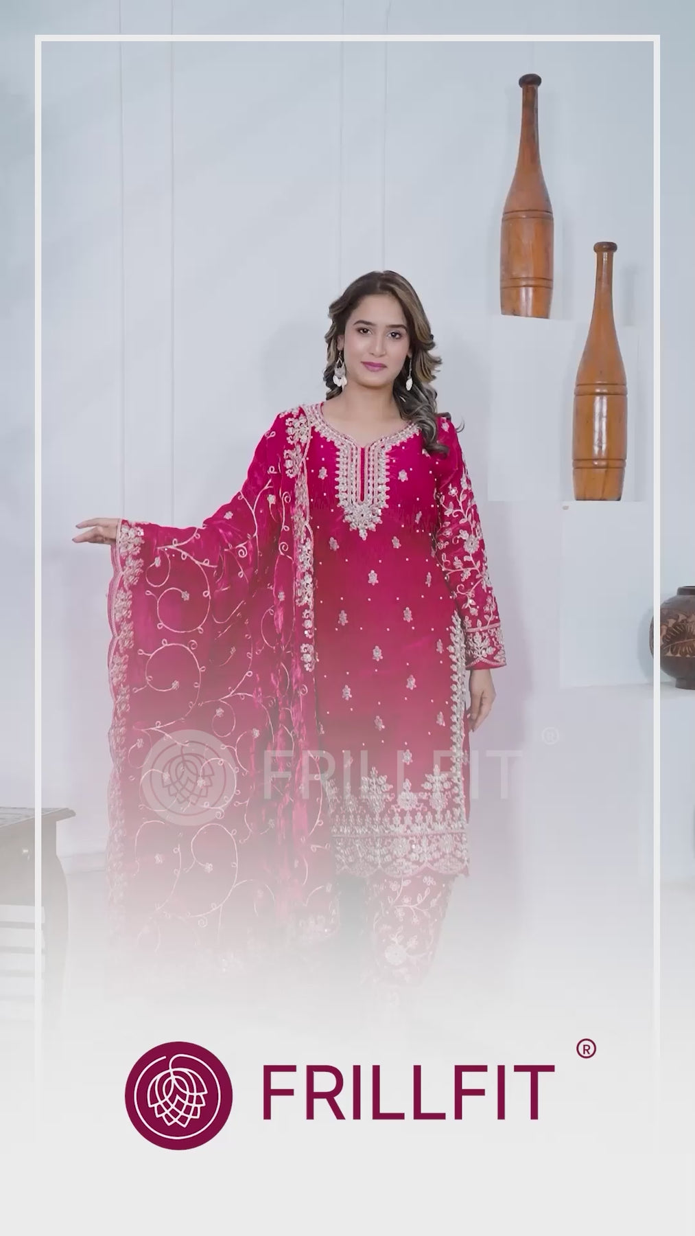 A breathtaking magenta sharara set enriched with intricate heavy embroidery and a statement dupatta, crafted for grand celebrations. Perfect for weddings, receptions, and festive occasions, this outfit delivers a luxurious royal look with timeless elegance and flawless detailing.